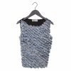 Jeans and Mesh Gathered Tapes Turtleneck Sleeveless Top